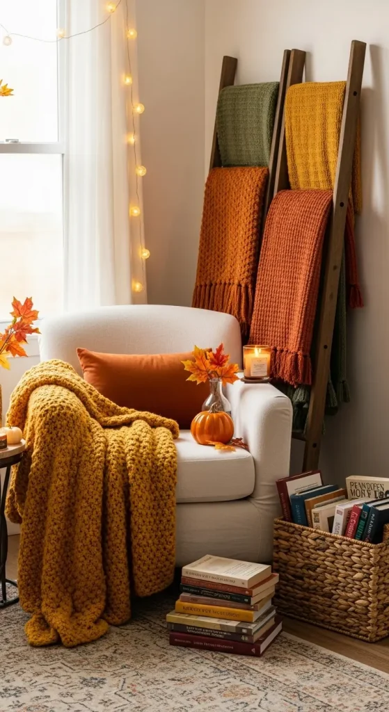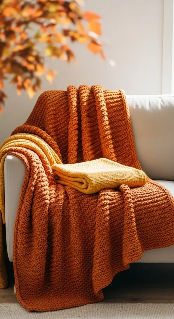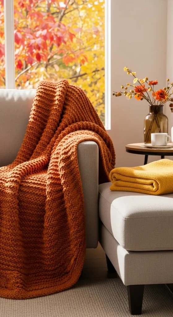 Nothing says autumn like a chunky knit blanket casually draped over your sofa or armchair. Opt for fabrics like wool, fleece, or cable-knit, and focus on colors that evoke the season burnt orange, mustard yellow, deep burgundy, and earthy browns. Layer two blankets for depth: one solid color and one patterned.
