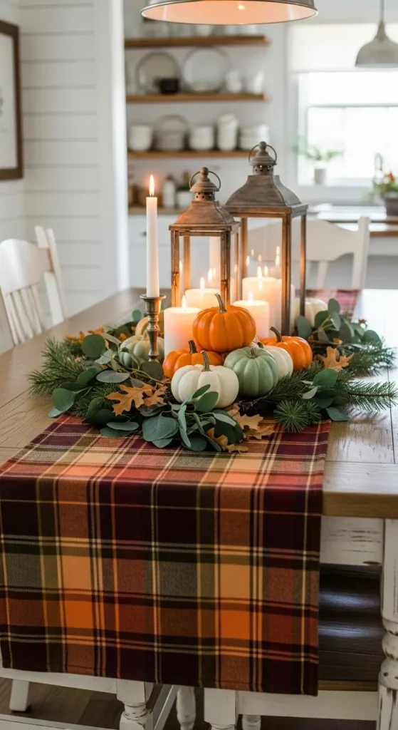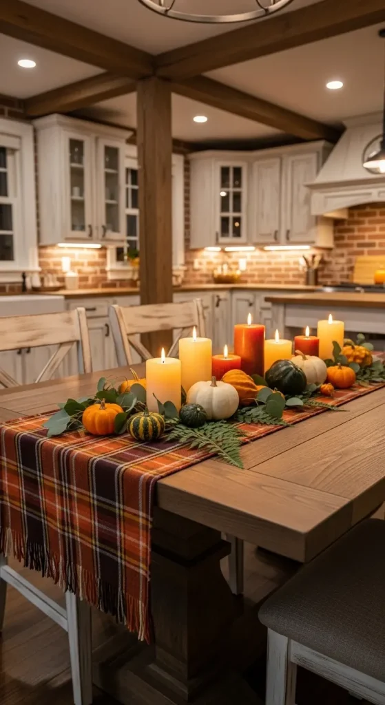 A table runner can completely change your dining space. Choose a rustic burlap runner for farmhouse charm, or a plaid fabric for a classic fall vibe. Layer with candles, greenery, and small pumpkins.