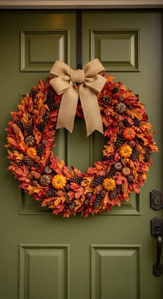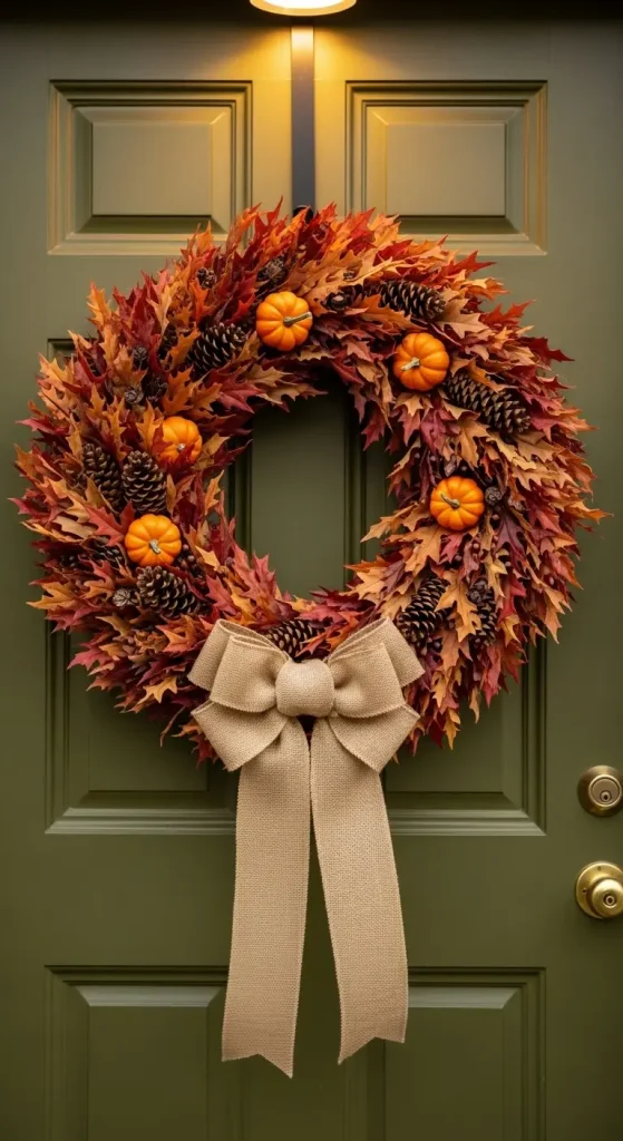 Your front door sets the tone for the season. Create or buy a wreath made from dried leaves, pinecones, berries, and small pumpkins. For a more modern twist, use a minimalist grapevine wreath with just a few seasonal touches.