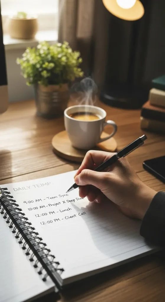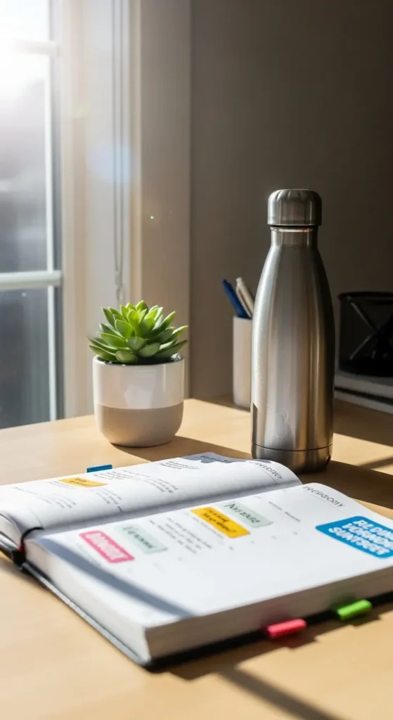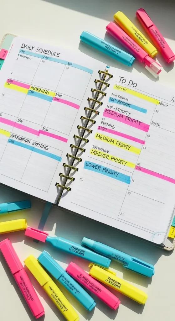 Assign colors to categories work, personal, self-care so you can see your day’s balance at a glance.