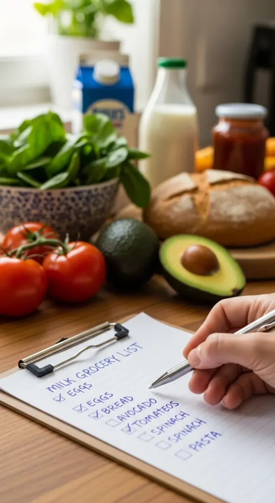 Write down every ingredient you’ll need. Organize your list by section produce, proteins, pantry items so you can shop faster.