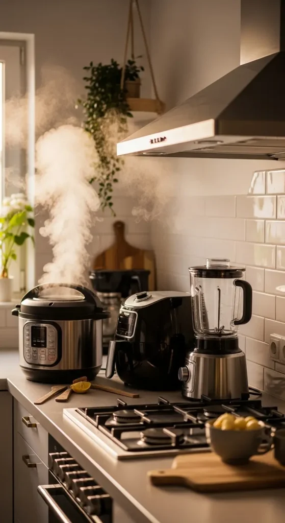 Pressure cookers, air fryers, and blenders can cut cooking time in half. Use them for soups, sides, and snacks.